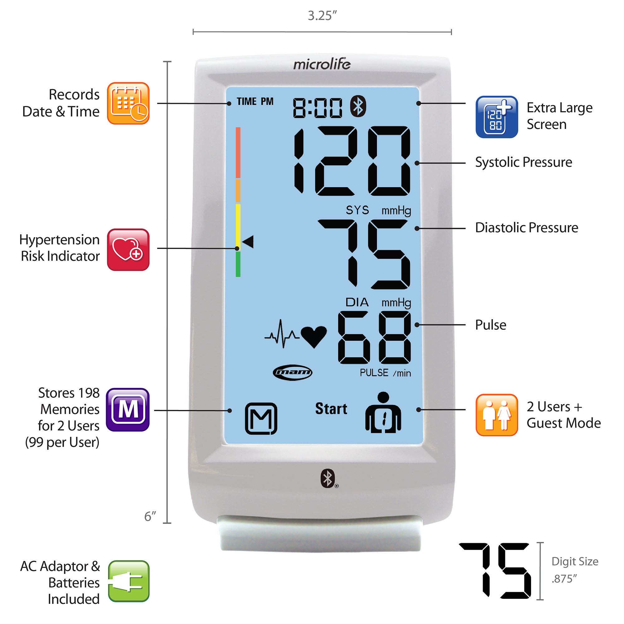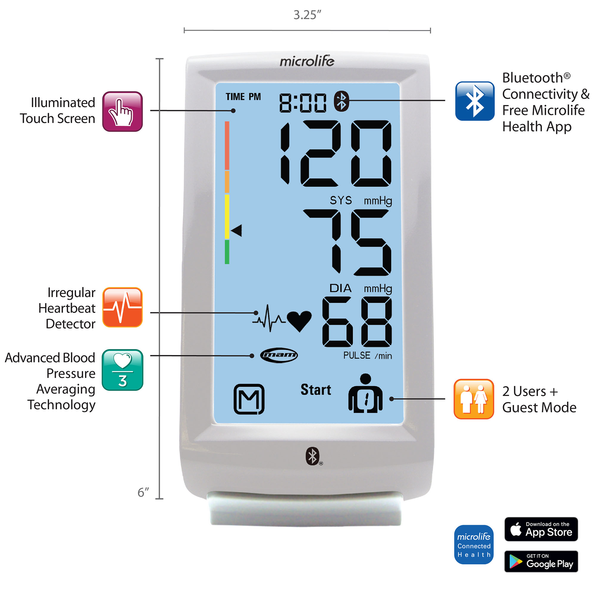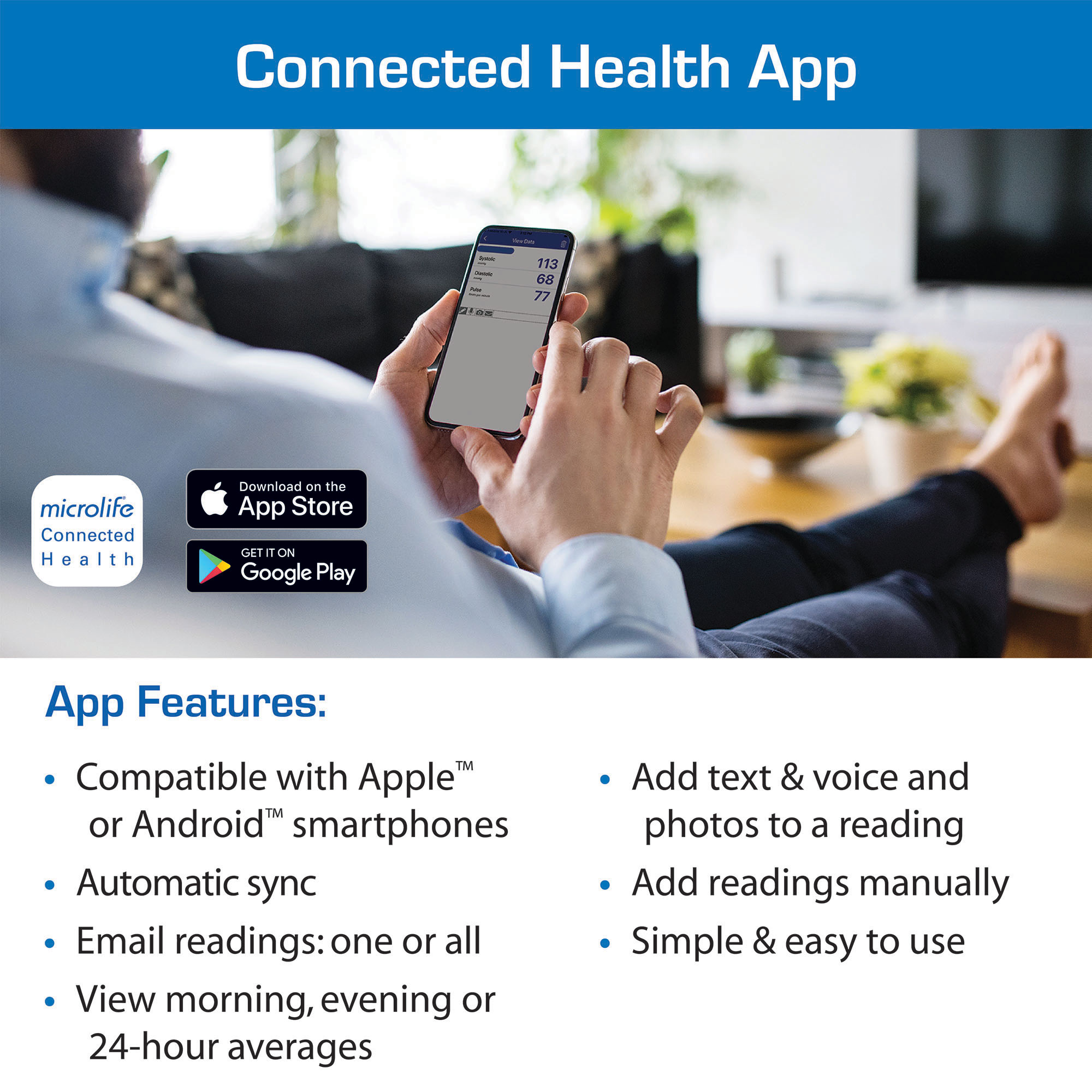 • Bluetooth Connectivity and Free Microlife Connected Health App